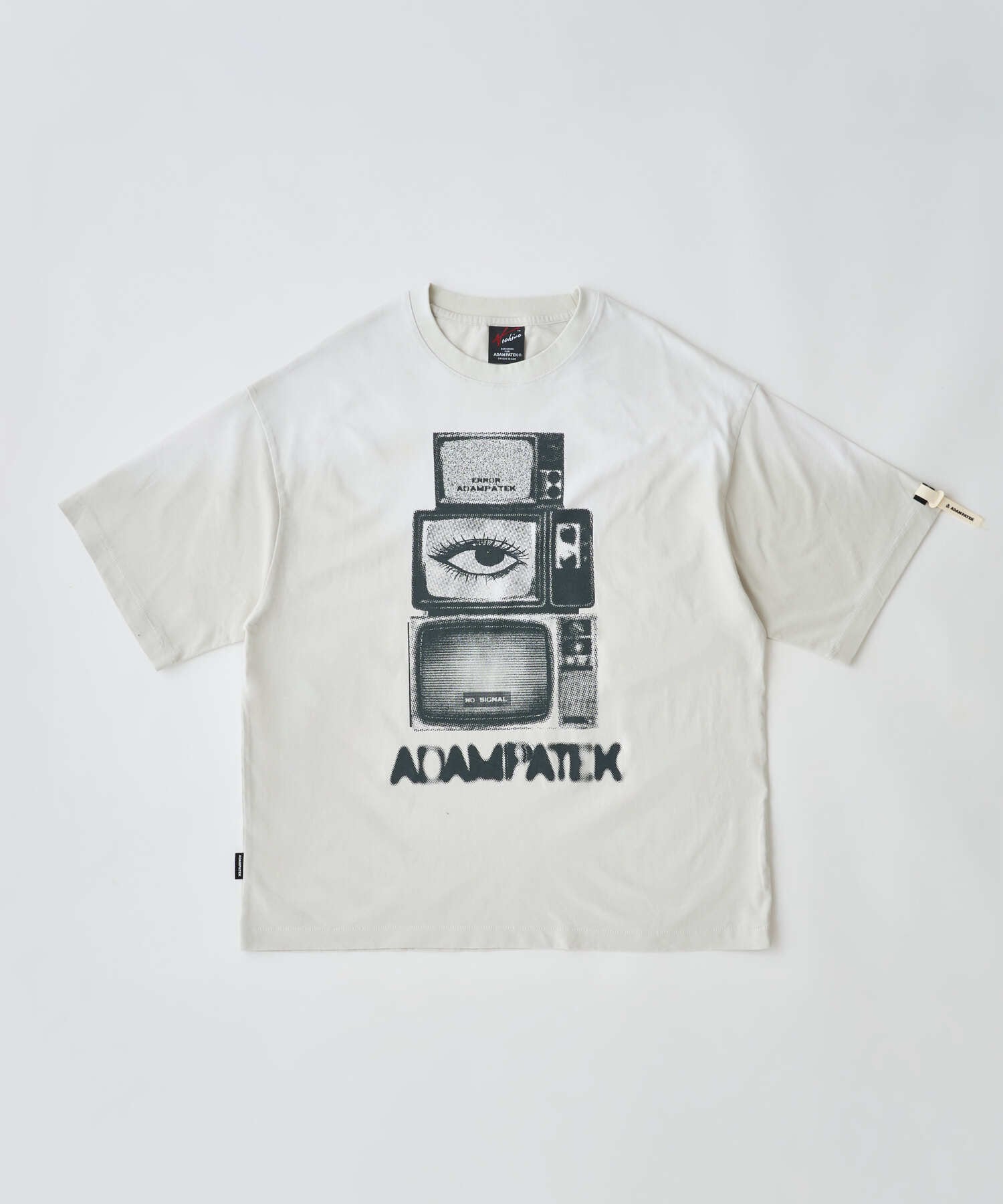 ノイズや“NO SIGNAL”を通して、情報に囲まれた現代を象徴するビジュアルを服に落とし込みました。