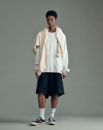 シルエットは着丈をやや抑えたルーズなボックスライン。