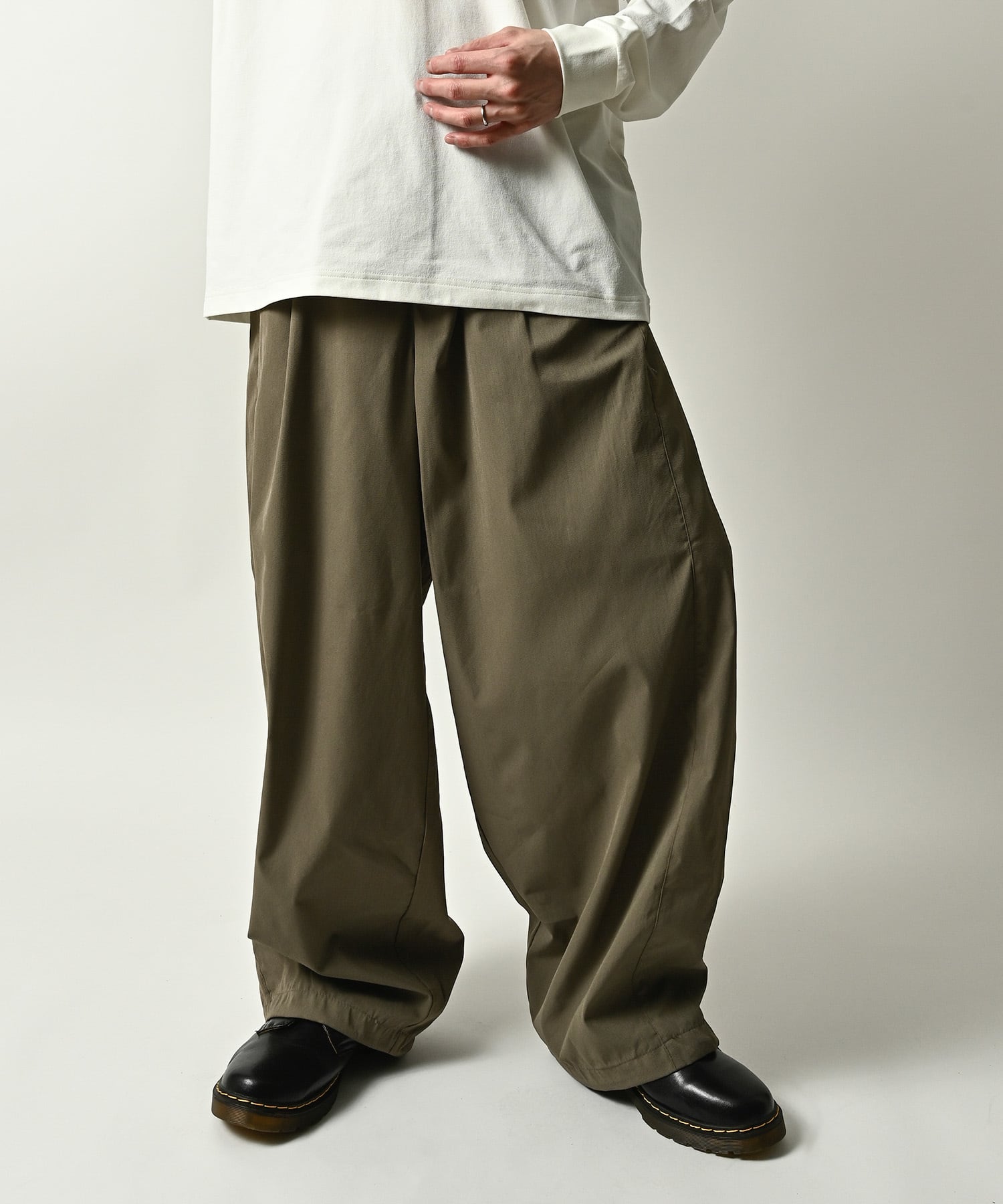 立体シルエットで魅せる、機能系ワイドパンツ。