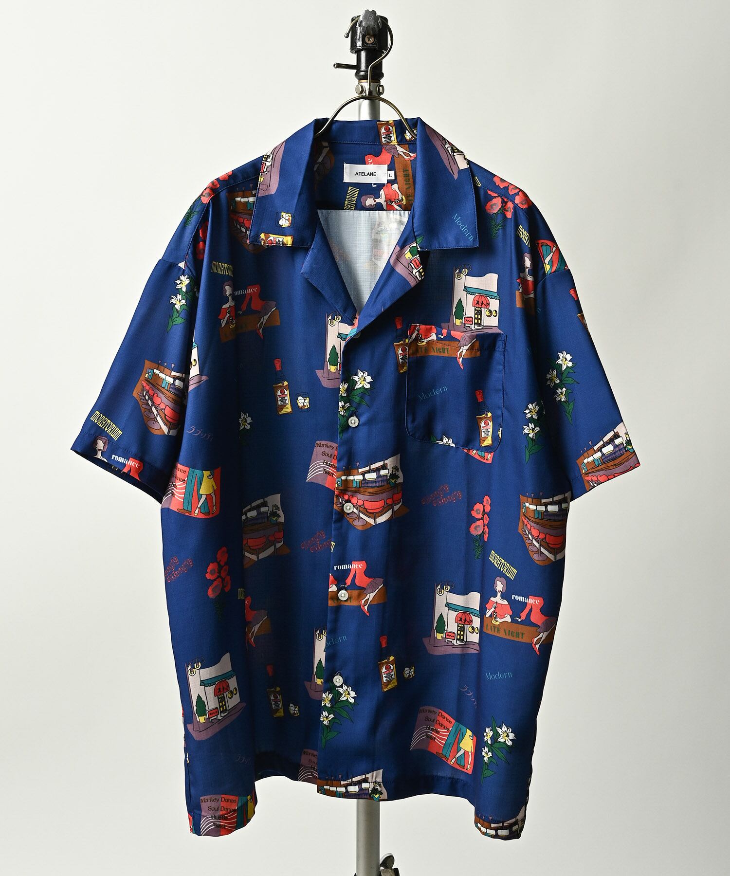 ATELANE定番のオリジナル総柄オープンカラーシャツ