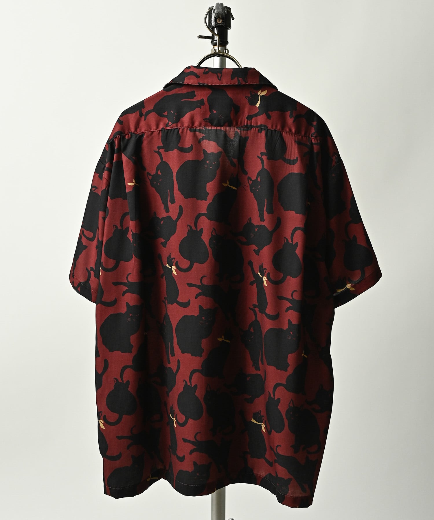 アテレーン 総柄S/Sオープンカラーシャツ(ネコ)