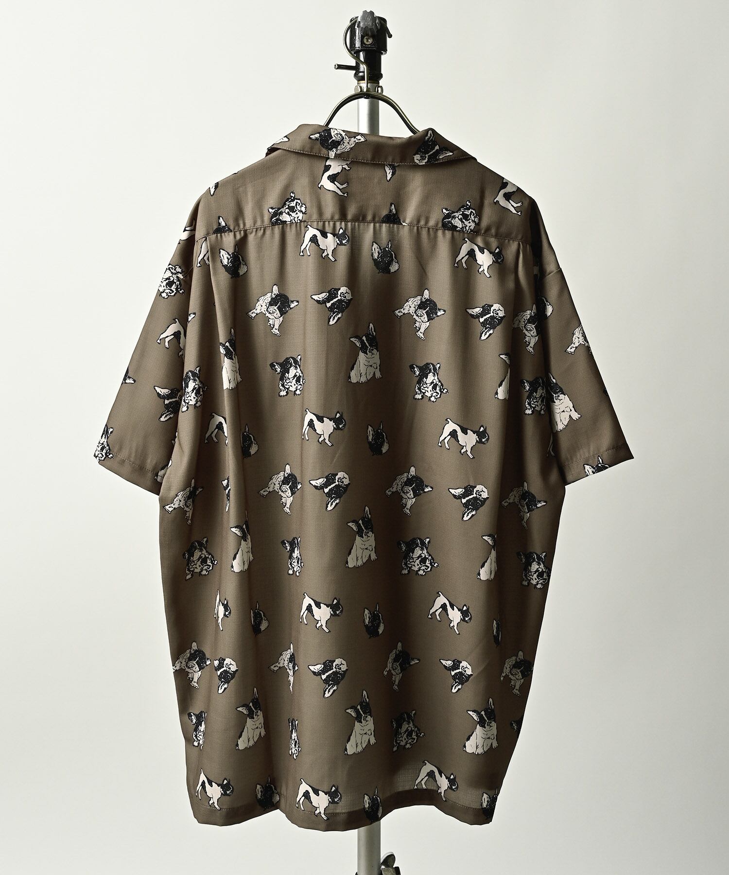 アテレーン 総柄S/Sオープンカラーシャツ(フレンチブルドッグ)