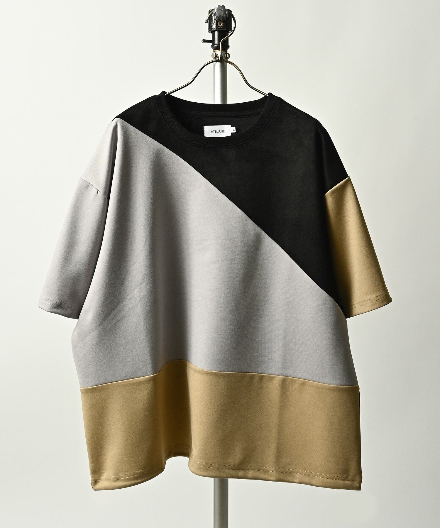 ATELANE Suede Ponch Panel Switching Tee (BLK) 26A-14080