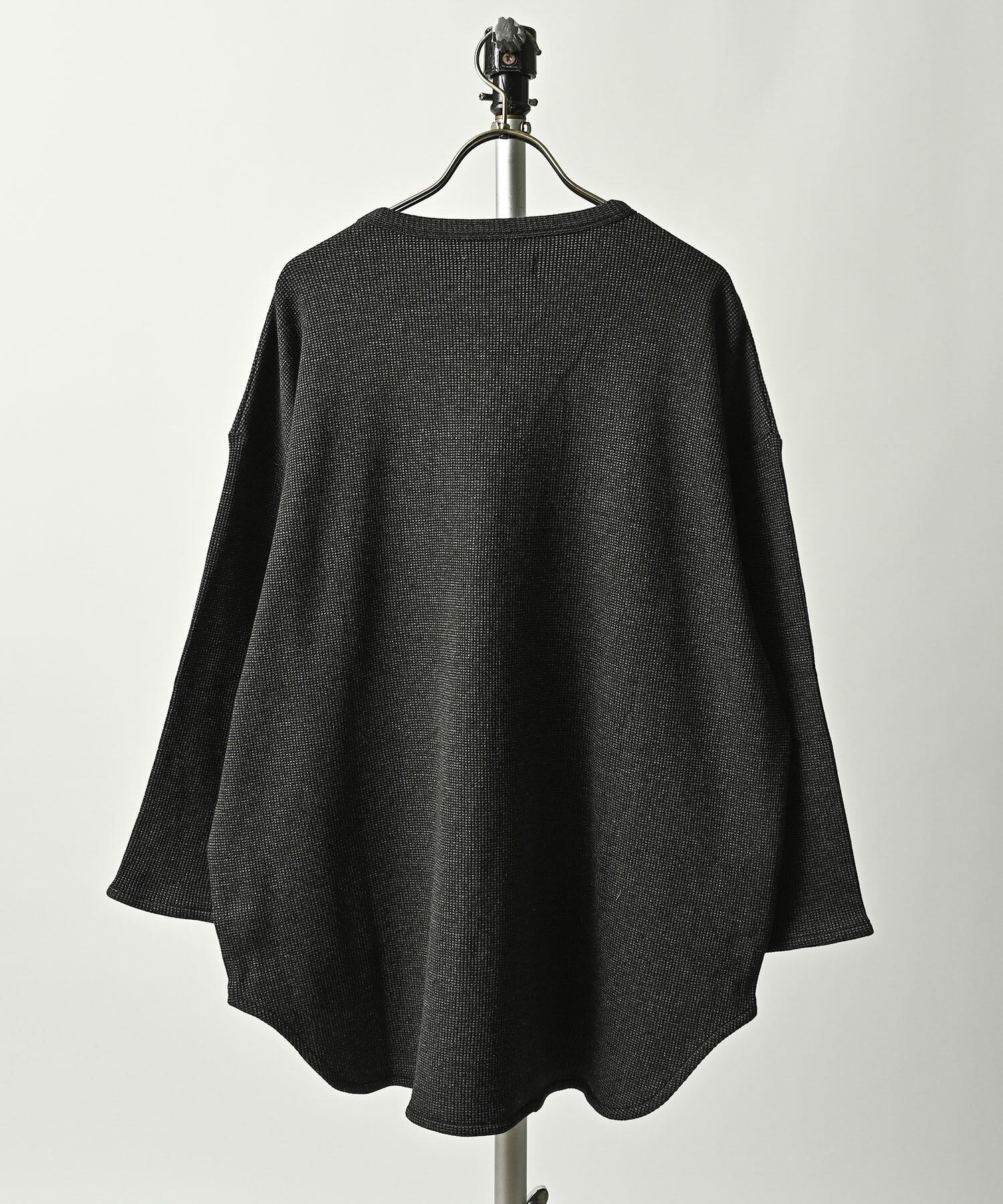 メランジカラーのワッフル生地で仕上げた7分袖Tシャツ