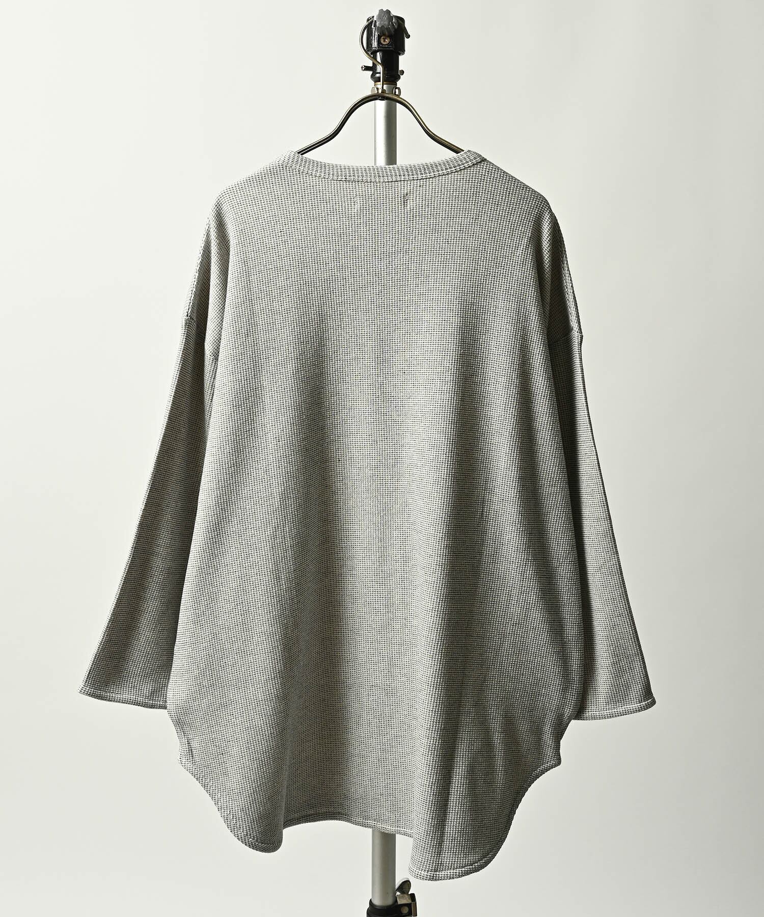 メランジカラーのワッフル生地で仕上げた7分袖Tシャツ