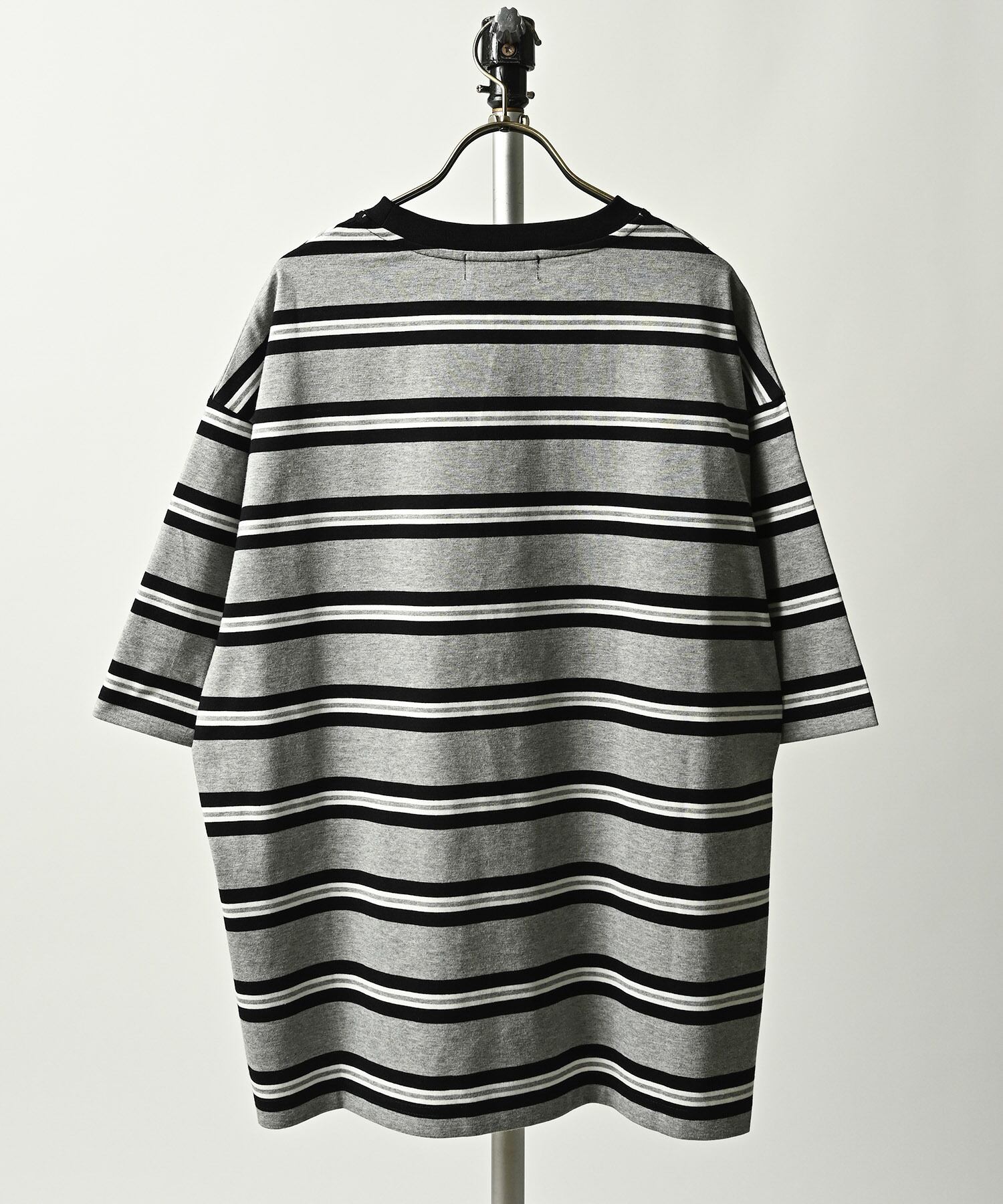 many men many mind multi border short-sleeved T-shirt (GRY/BLK) M2614040