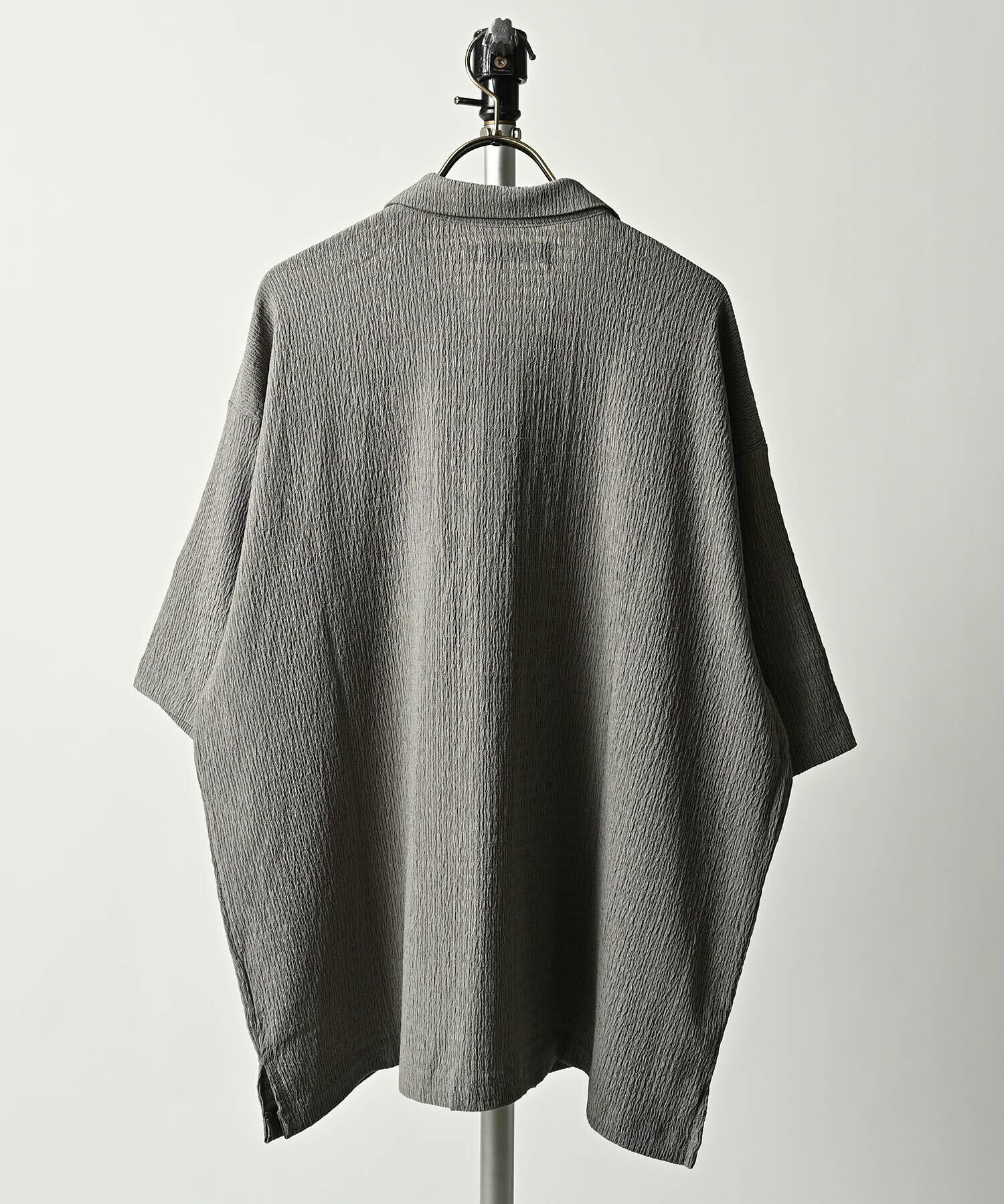 軽やかな楊柳素材を使用したこのシャツは、ポリエステル95%とポリウレタン5%の組成で、心地よい着用感を実現しています。リラックスしたスタイルながら、洗練された雰囲気を持つ一枚です。