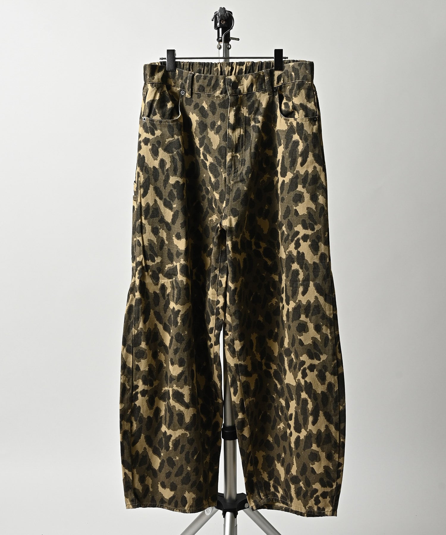 大胆な総柄プリントが存在感を放つ、カーブパンツ。