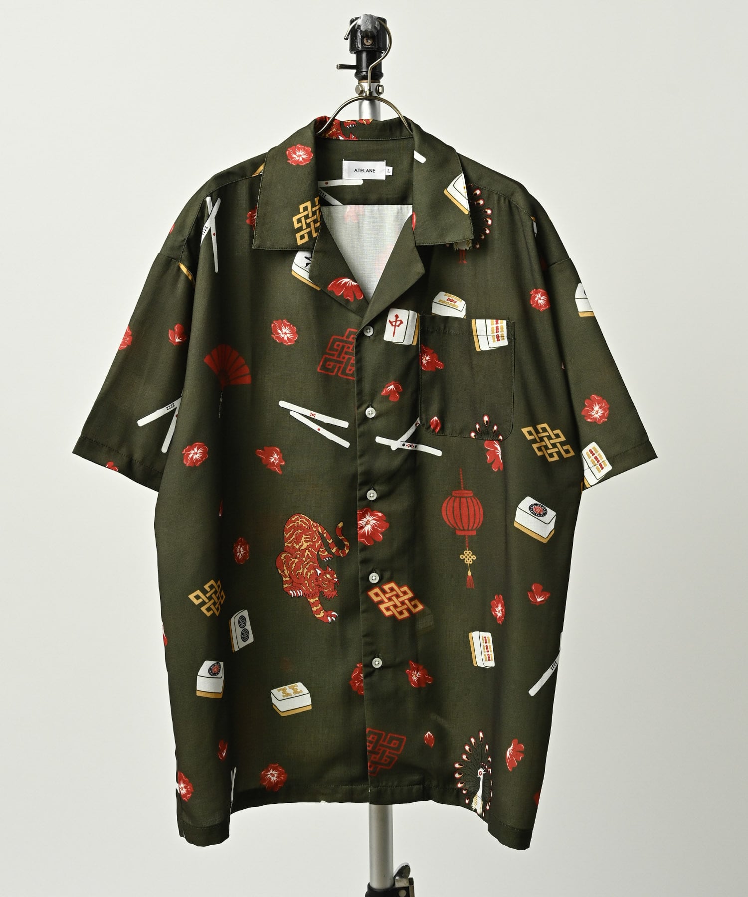 ATELANE定番のオリジナル総柄オープンカラーシャツ