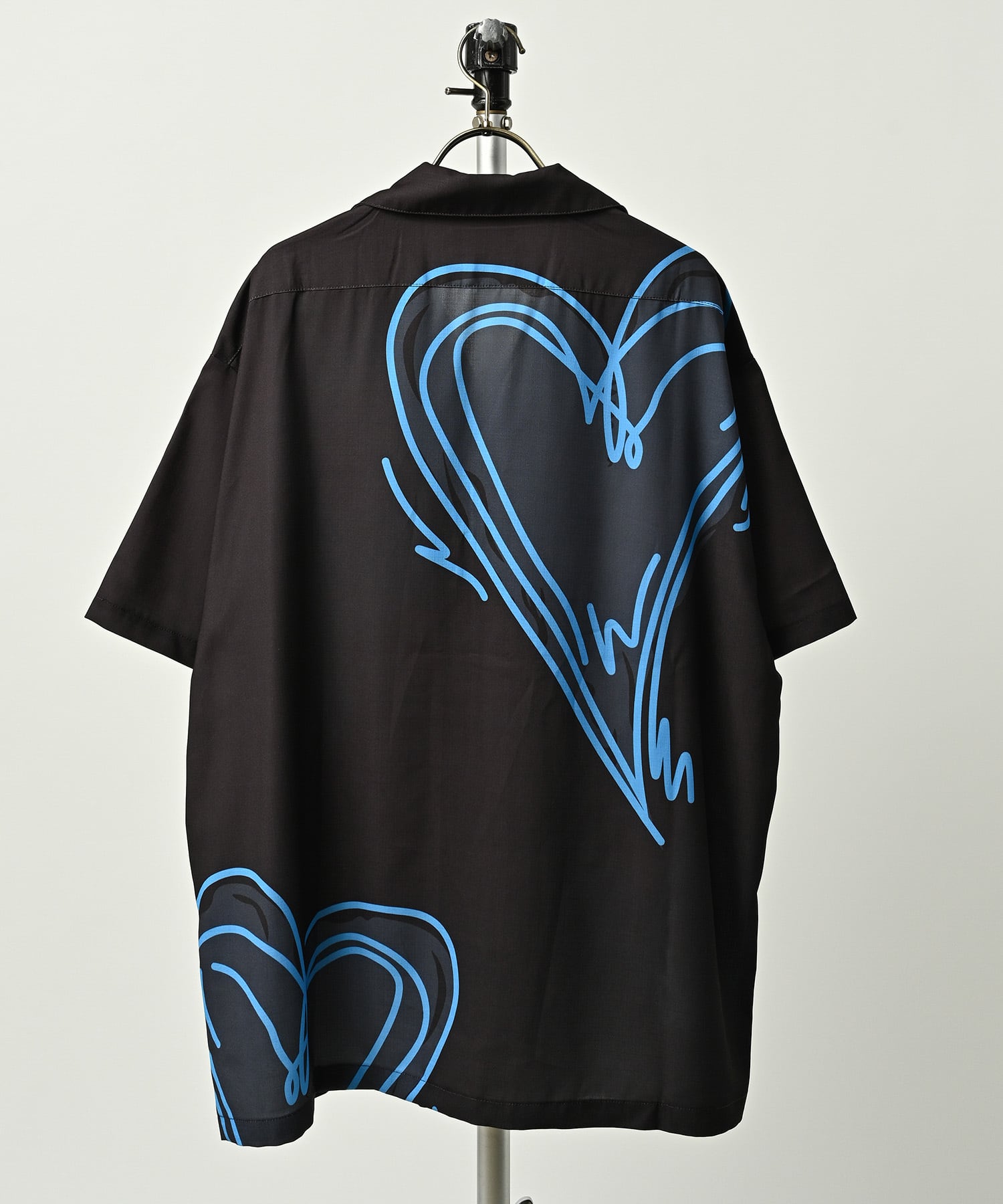 ATELANE BIG HEART Print short-sleeved Open Shirt (BLK) 26A-15052