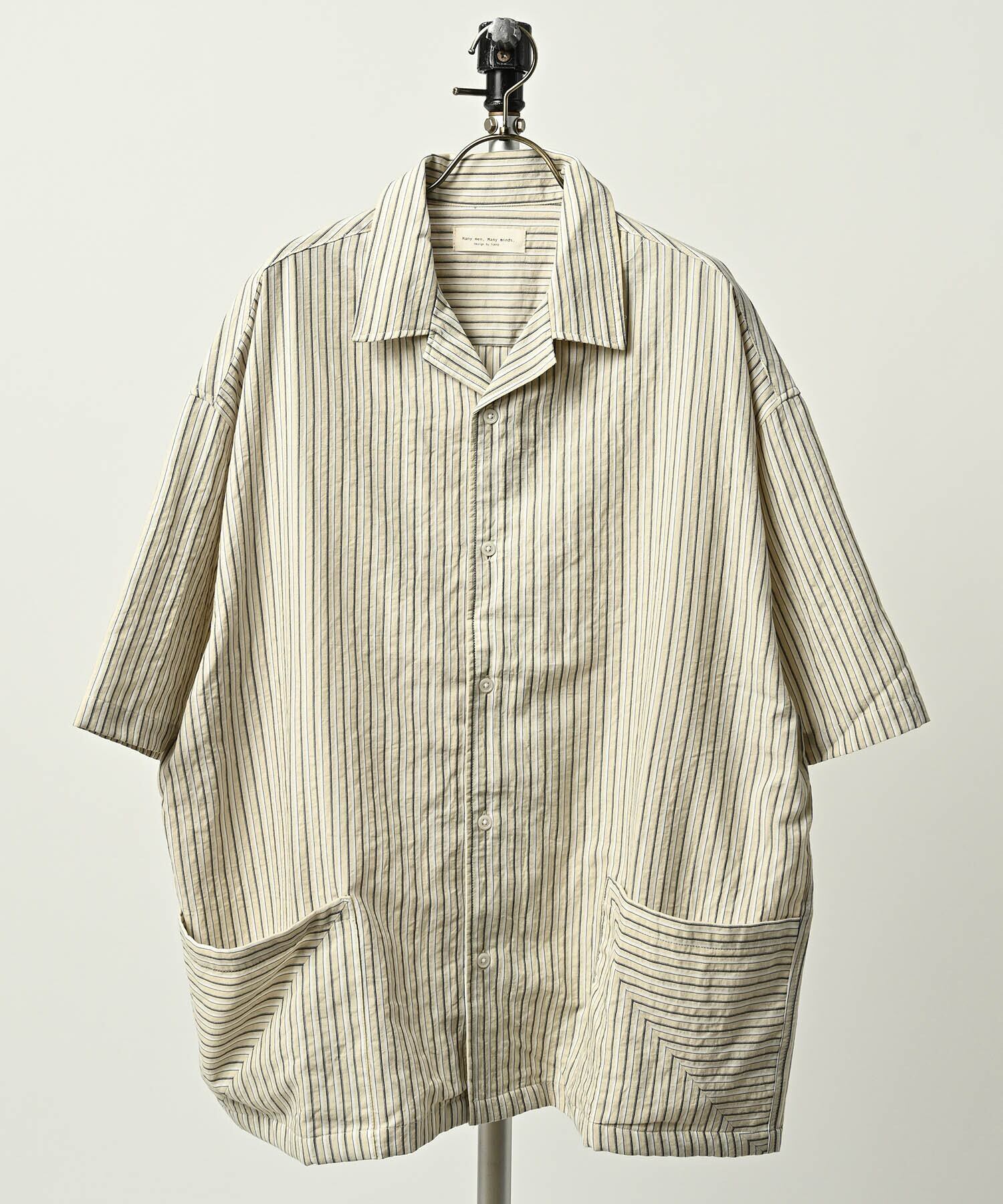 many men many mind Soccer stripe big pocket short-sleeved shirt (BEG) M2615120