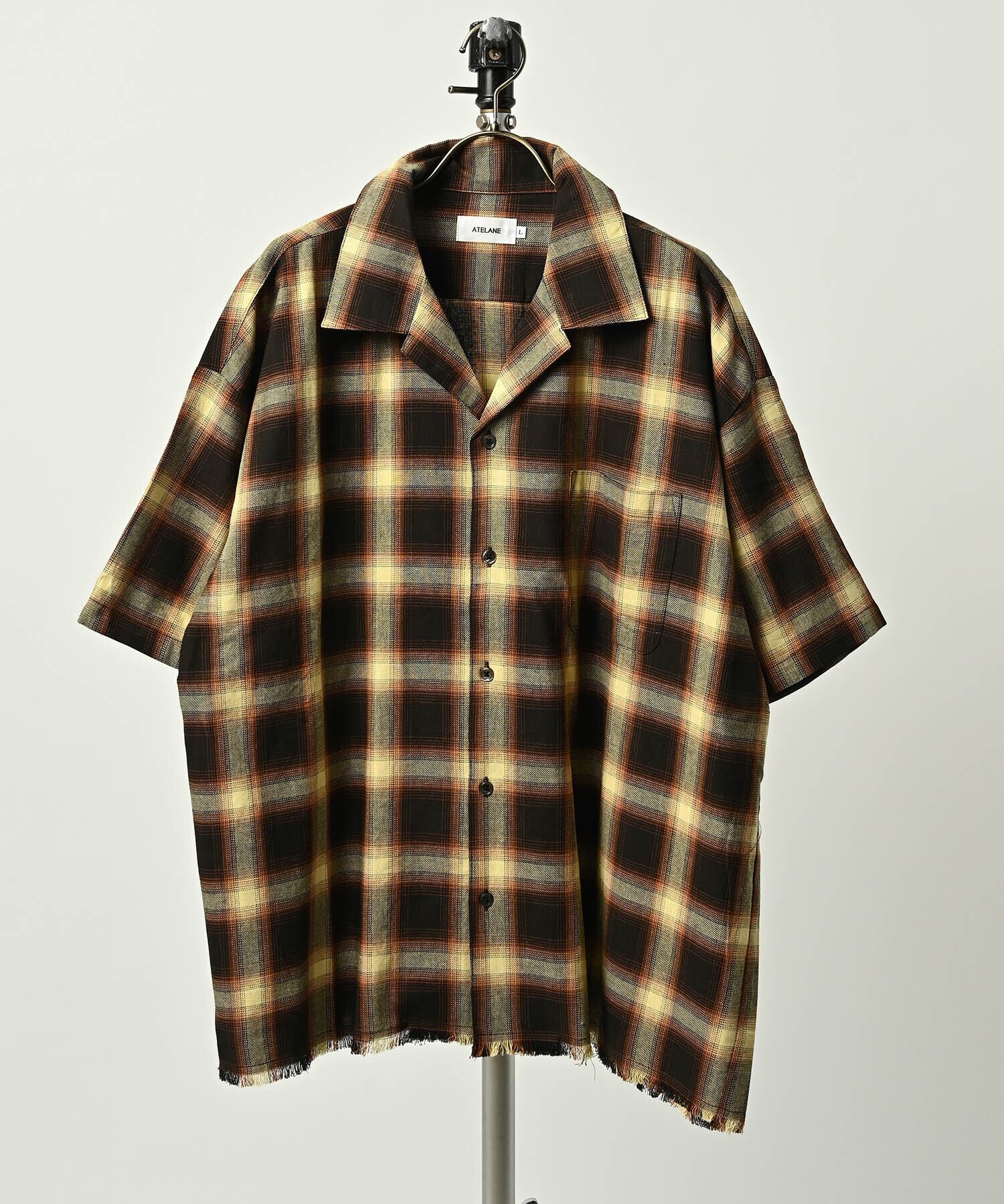 ATELANE Onbre Check short-sleeved Fringe Open Shirt (BRN) 26A-15064
