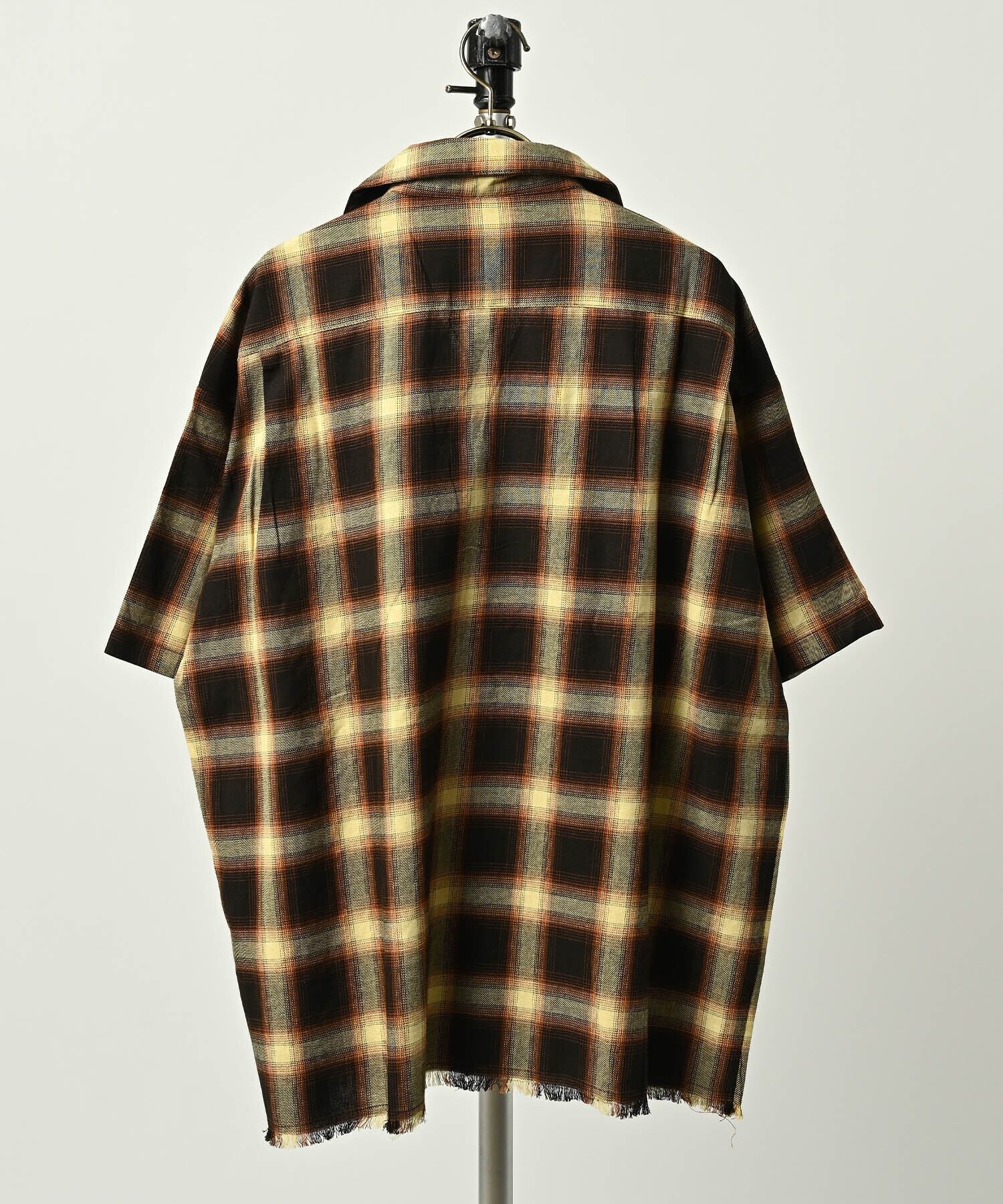オンブレーチェック 裾フリンジオープンカラーシャツ。
