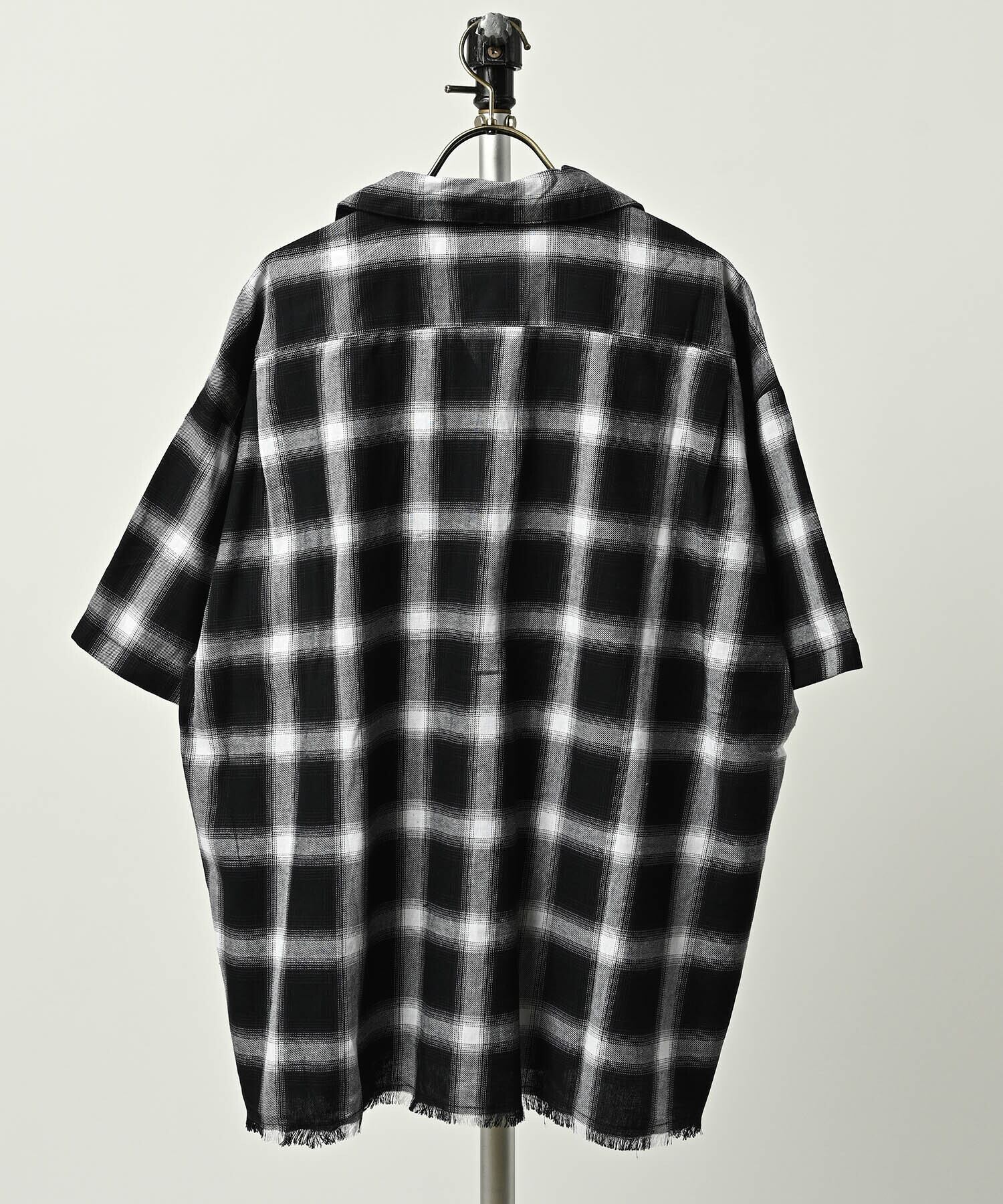 オンブレーチェック 裾フリンジオープンカラーシャツ。