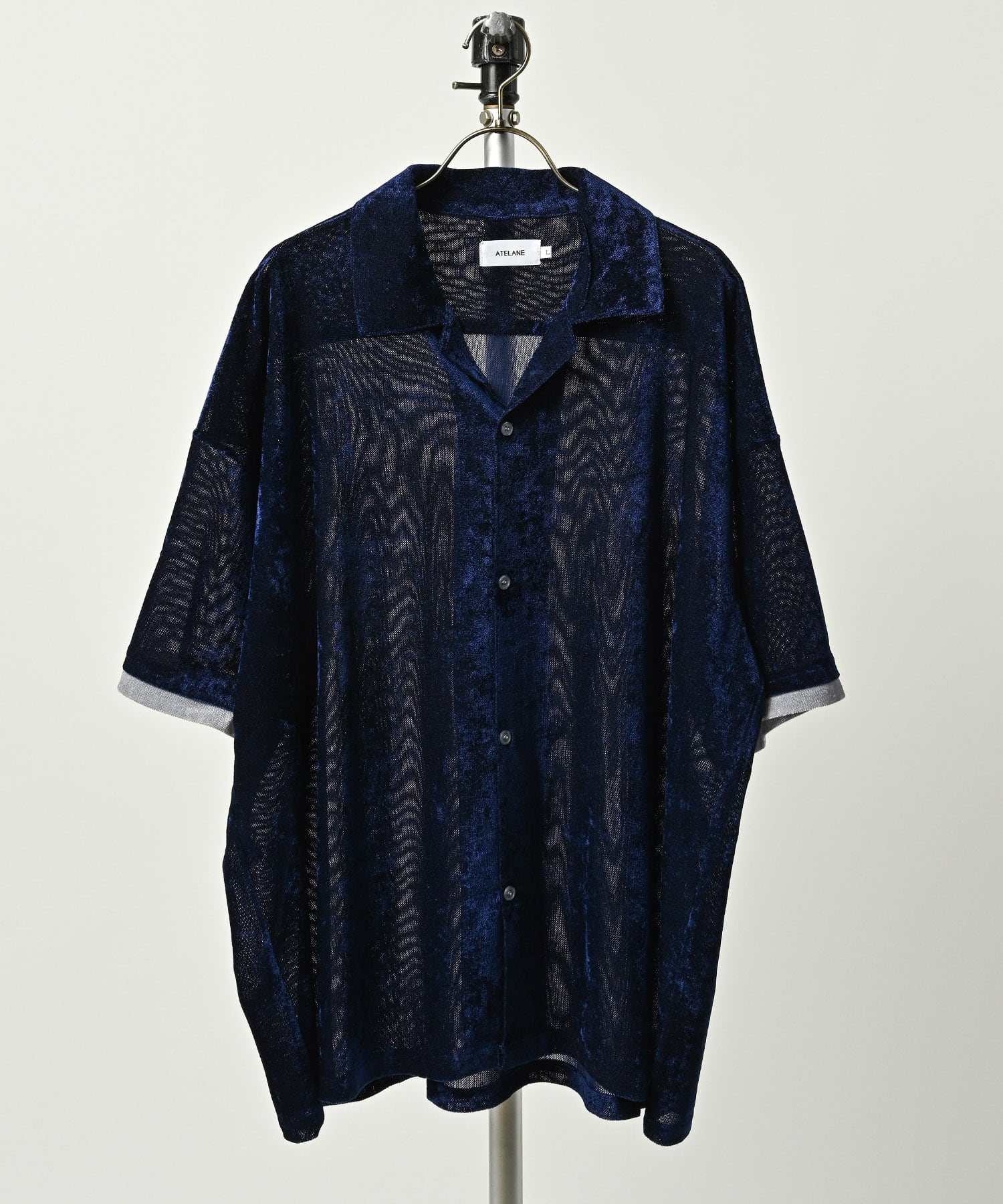 ATELANE Sheer velour short-sleeved open shirt (NAV) 26A-15101