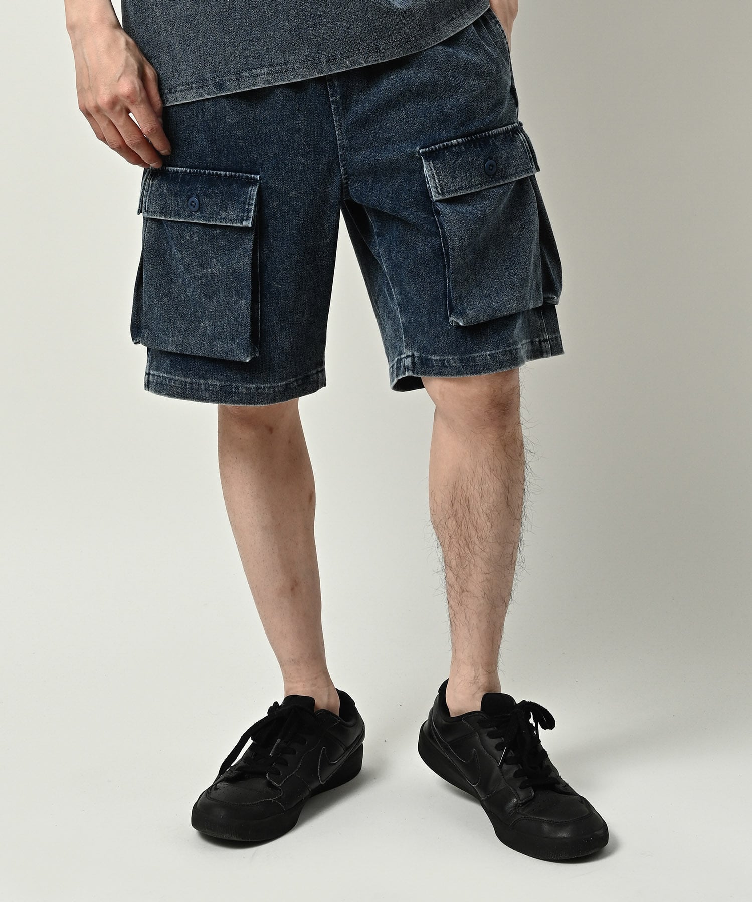 MMMM Lightweight knit denim multi-pocket cargo shorts (BLU) 18130M26