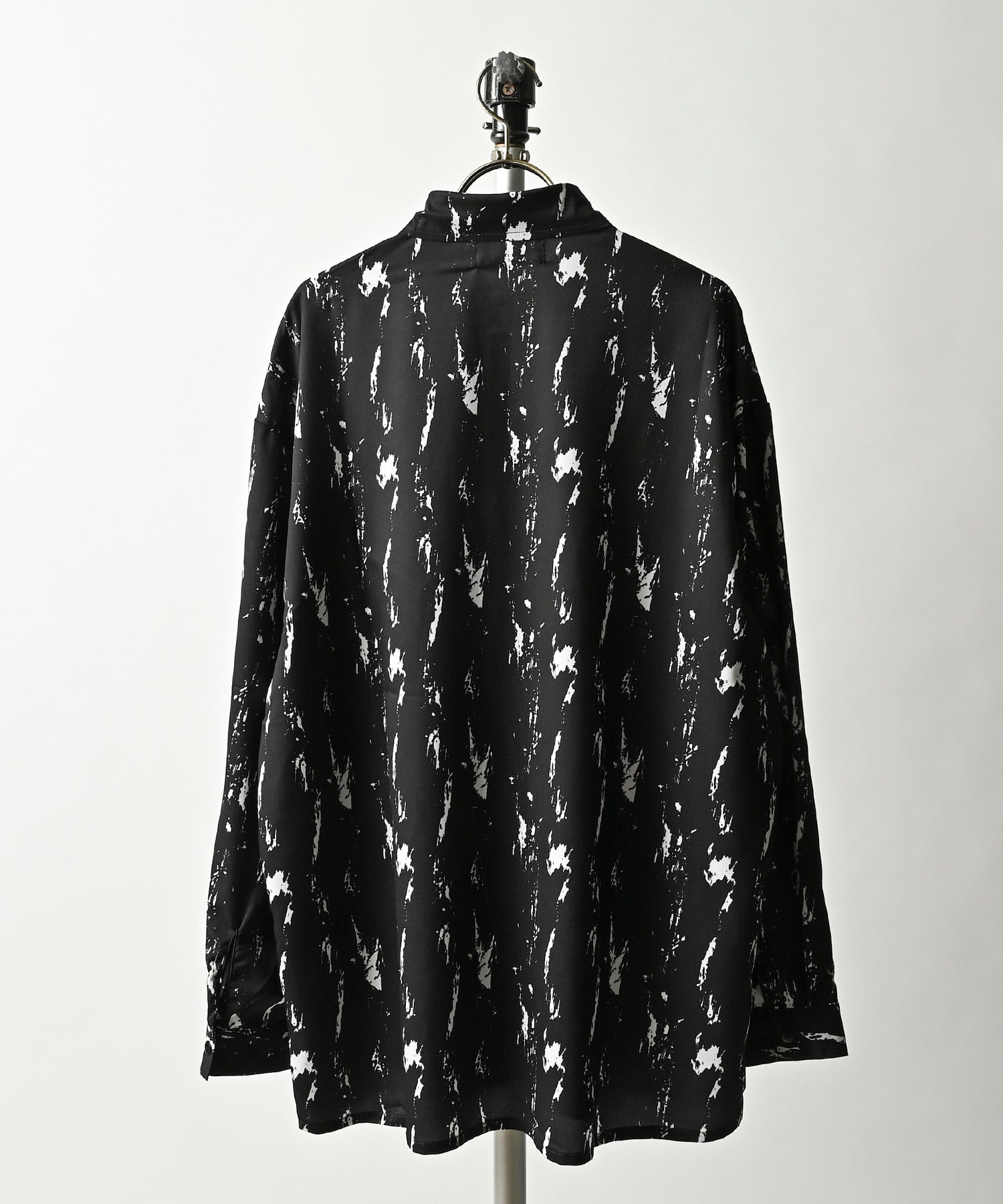 VOLUNTAS uneven pattern print shirt (BLK) 436007