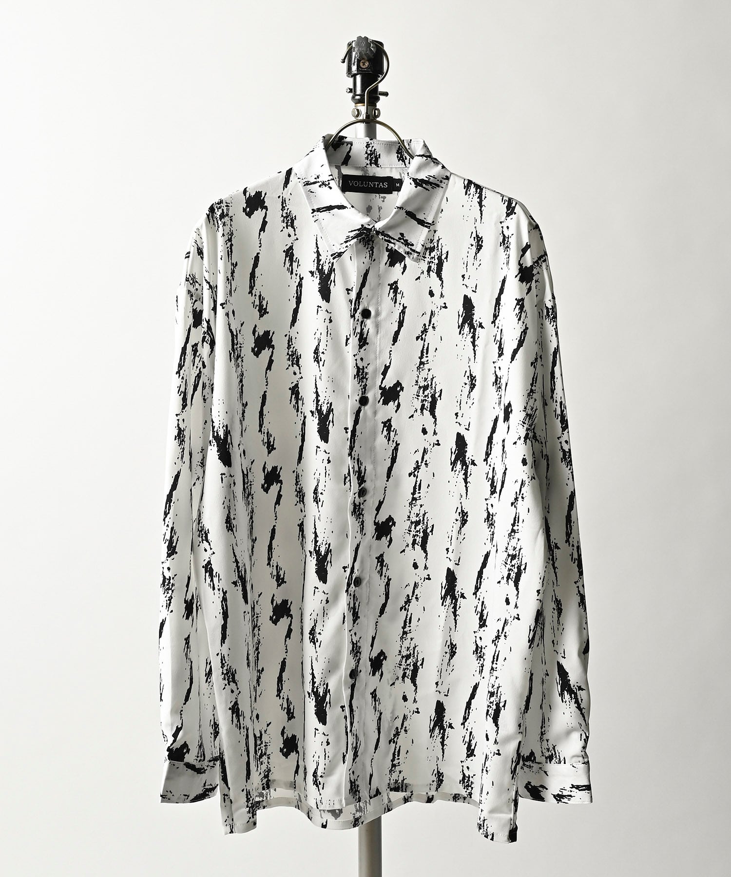 VOLUNTAS uneven pattern print shirt (WHT) 436007