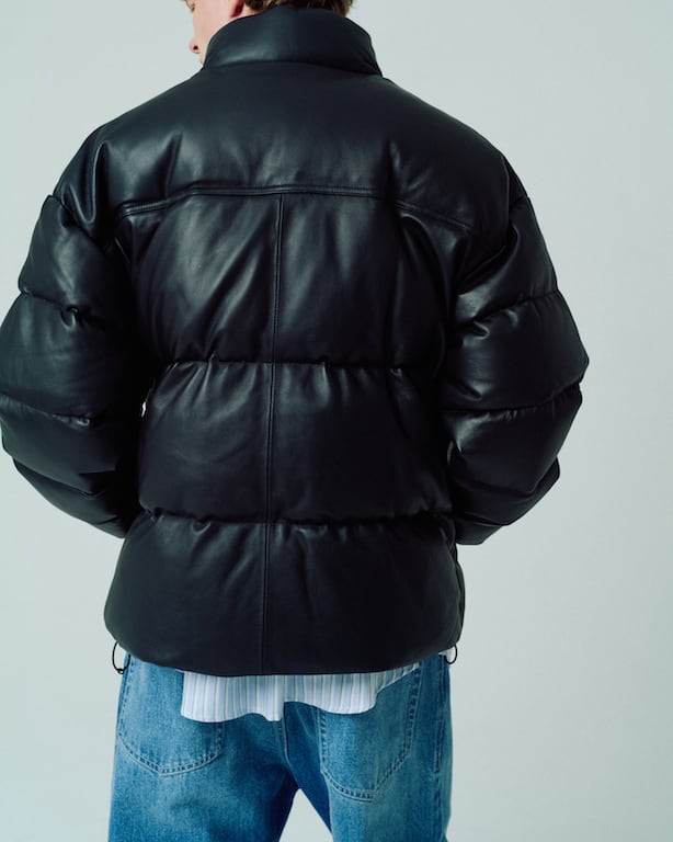 レザーのマットな質感がダウンジャケットでありながら