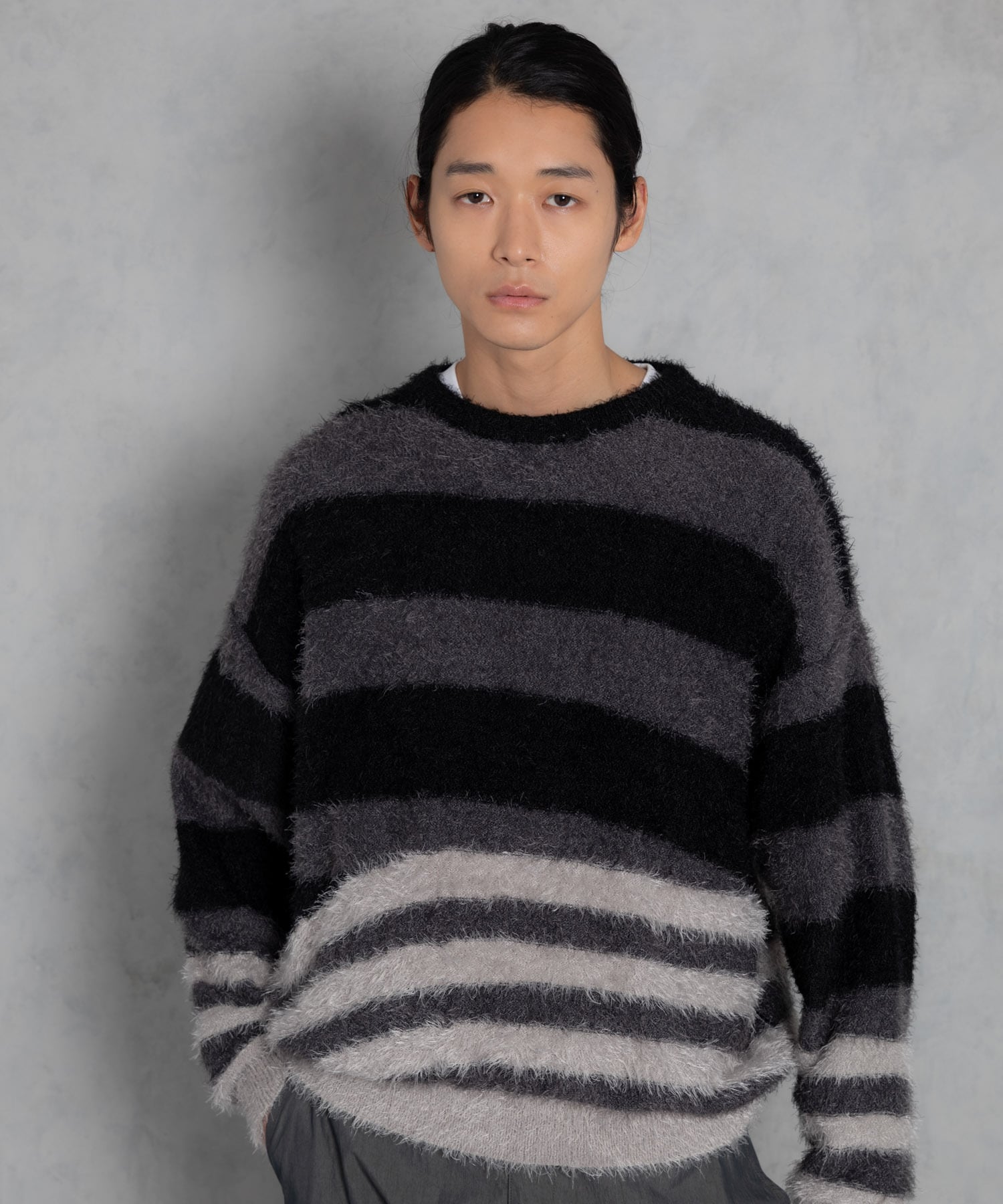 ADAM PATEK shaggy distorted stripes crew knit (GRY) AP2421012